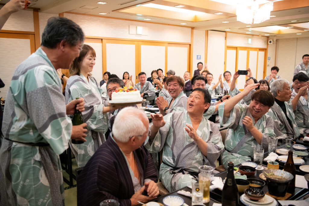 その日、誕生日だった役員にバースデーケーキのサプライズ!その後も盛り上がる夜でした。