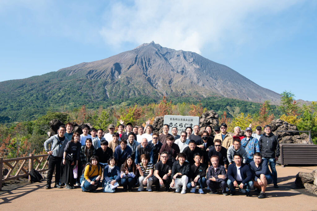 桜島の前で記念撮影!