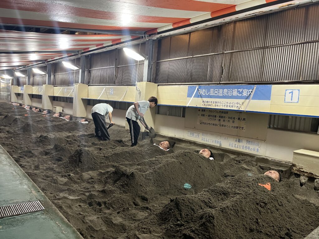 早速、指宿名物砂風呂!疲れを汗と共に流します。